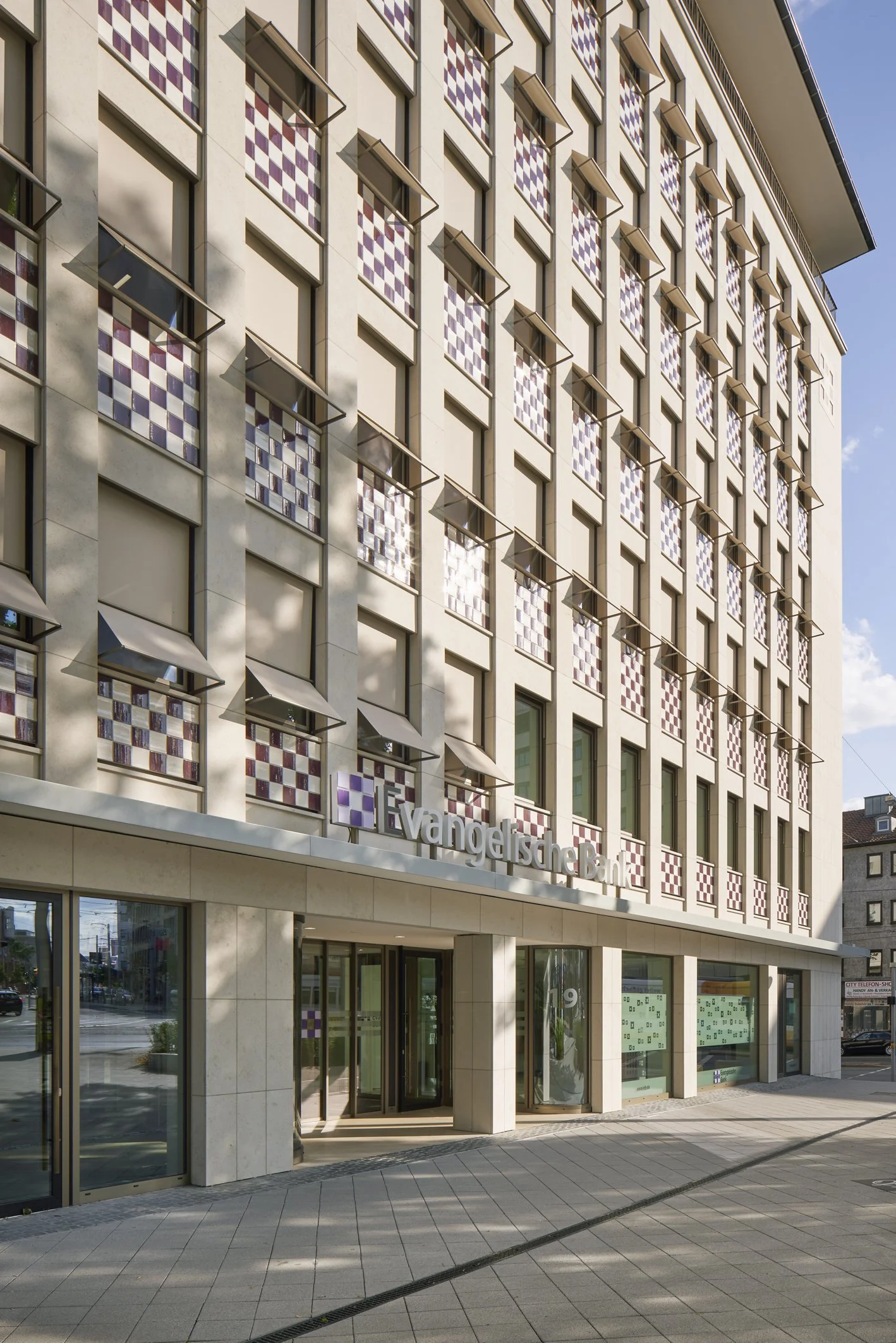 Im Dezember 2020 konnten die Mitarbeiter der Evangelischen Bank in Kassel nach gut zweieinhalb Jahren Bauzeit den durch uns geplanten neuen Standort in der Innenstadt von Kassel beziehen. Das anspruchsvolle Vorhaben wurde unter nachhaltigen Gesichtspunkten geplant und gebaut und berücksichtigte dabei vor allem die Einsparung von CO² bei der Herstellung des Gebäudes durch die Verwendung der grauen Energie des Bestands.